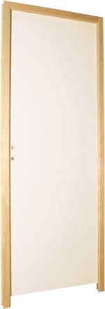 Bloc porte alvéolaire 3 panneaux prépeint. Huisserie sapin brut. Serrure posée. Quincaillerie
