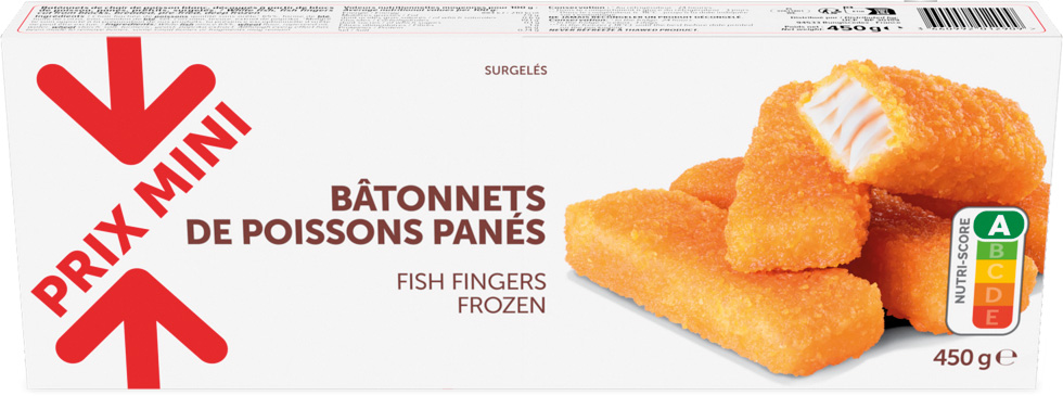 POISSONS PANEES SURGELES PRIX MINI La boîte de 450 g.
