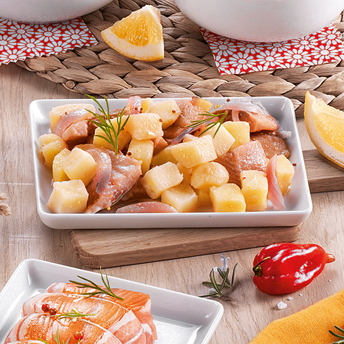 Pommes de terre, hareng, oignon rouge, vinaigrette