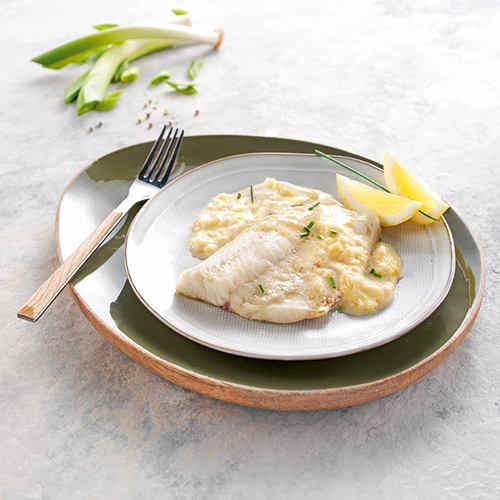 Leclerc SANDRE ET SA FONDUE DE POIREAUX 250 g. Le kg : 19,95 €.