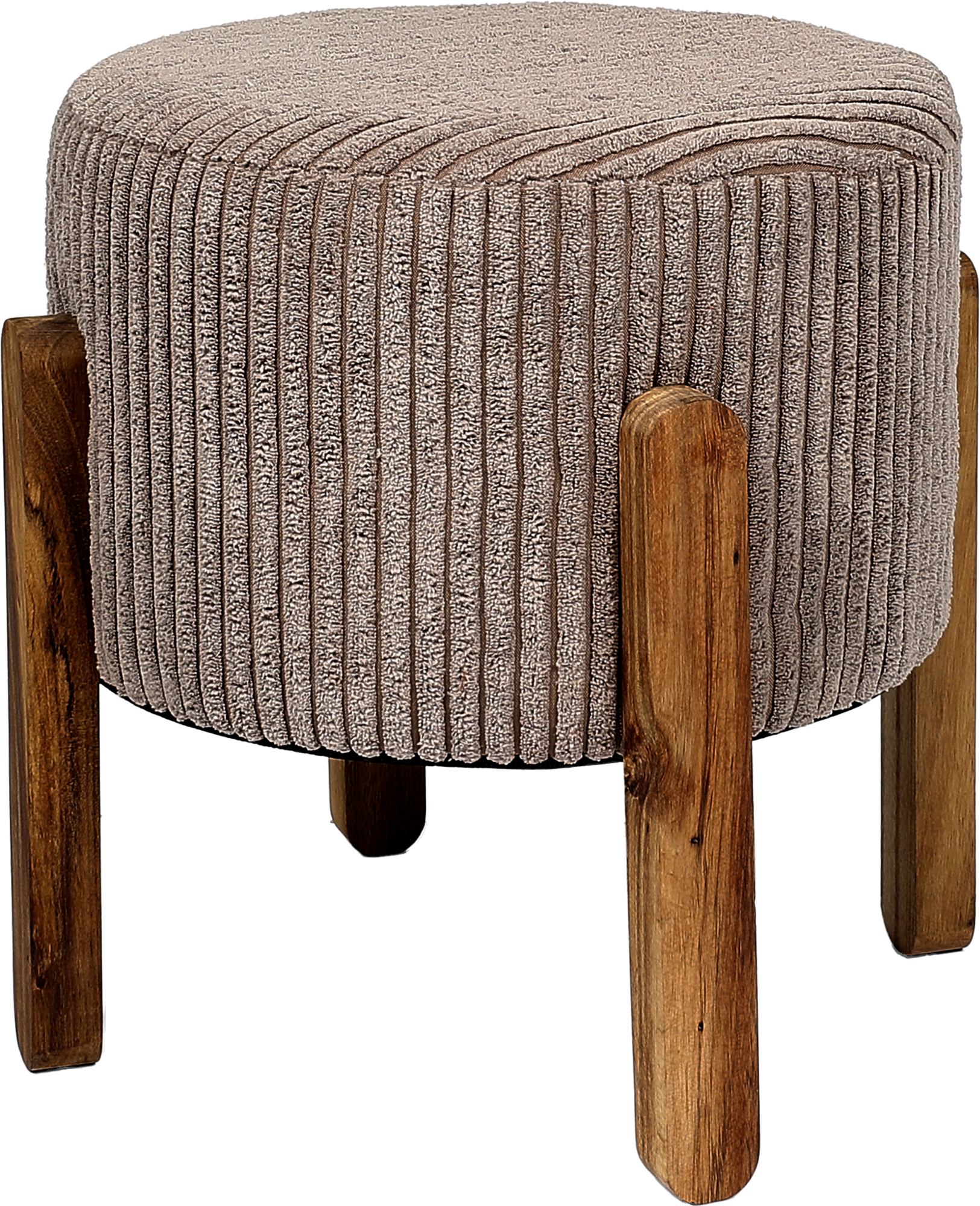Structure MDF, rembourrage mousse PU et piètement bois. Dim. : Ø 30 x H. 30 cm. A monter soi-même. Existe en taupe ou en beige.