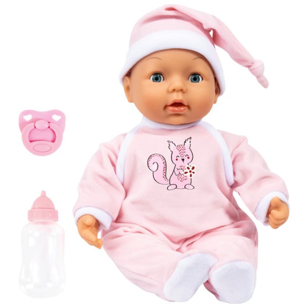 Poupon tout doux de 38 cm qui réagit comme un vrai bébé. Plus de 25 sons et réactions !