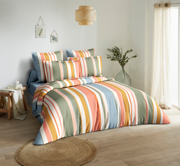 La housse de couette 200 x 200 cm + 2 taies 60% polyester recyclé et 40% coton recyclé Ref. 491604 - Existe le drap housse 140 x 190 cm : 12€99 6€49 D'autres tailles disponibles (voir prix en magasin) - .