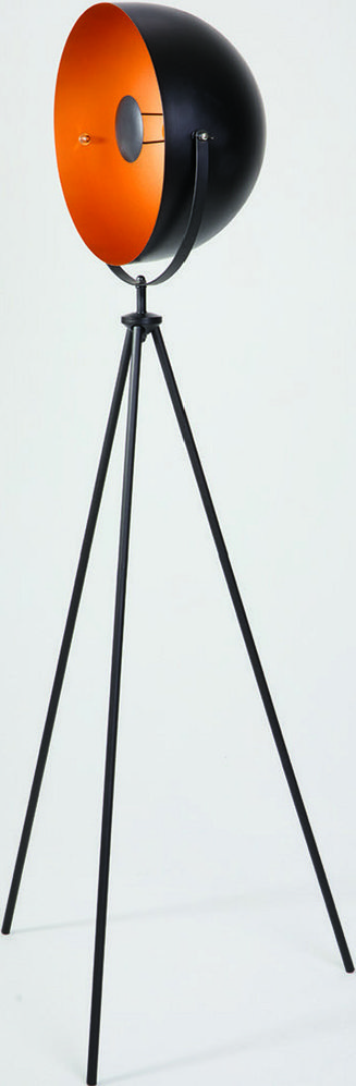 Trépied et base en métal noir, intérieur doré. Dim. : Ø 47 x H. 160 cm env. Avec interrupteur à pied.