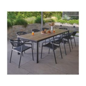 Table de jardin en HPL et 8 fauteuils en cordage nylon gris anthracite