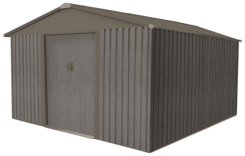 En acier zingué, galvanisé, 2 portes coulissantes, 2 aérations, kit d'ancrage Dim : 311 x 291 x 205 cm Coloris : marron aspect bois vieilli Disponible en 13.5 m2 à 785 €GARANTIE 15 ANSPRODUITS DISPONIBLES DU 3 MARS AU 28 JUIN.