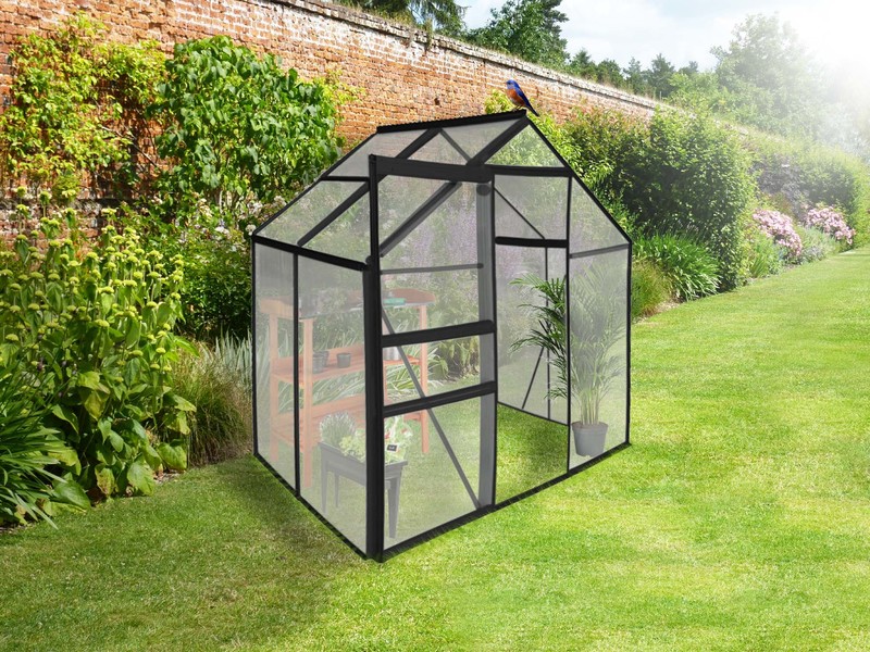 En polycarbonate, base en acier galvanisé Lucarne de toit, porte coulissante, gouttières Disponible en 3.5 m2 à 279 € et 4.75 m2 à 330 € Coloris : anthracite Garantie : structure 2 ans et 10 ans contre le jaunissement des panneauxPRODUITS DISPONIBLES DU 3 MARS AU 28 JUIN.