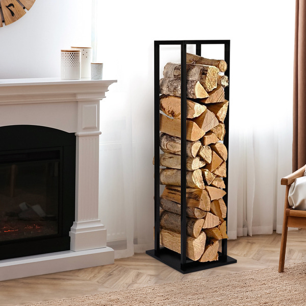Dim : 35 x 35 x 120 cm. Ce bûcher en acier laqué antirouille est robuste et décoratif. Il vous permettra de stocker avec élégance des bûches près de votre cheminée.