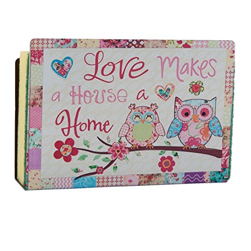 Porte éponge en métal motif hiboux chouettes colorés * dimensions 12x3x9cm * inscription : Love makes a house a home.