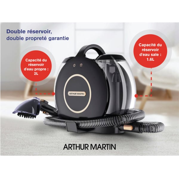 2 vitesses, capacité réservoir eau propre 2L, eau sale 1,6L, réservoir amovible, auto nettoyage,