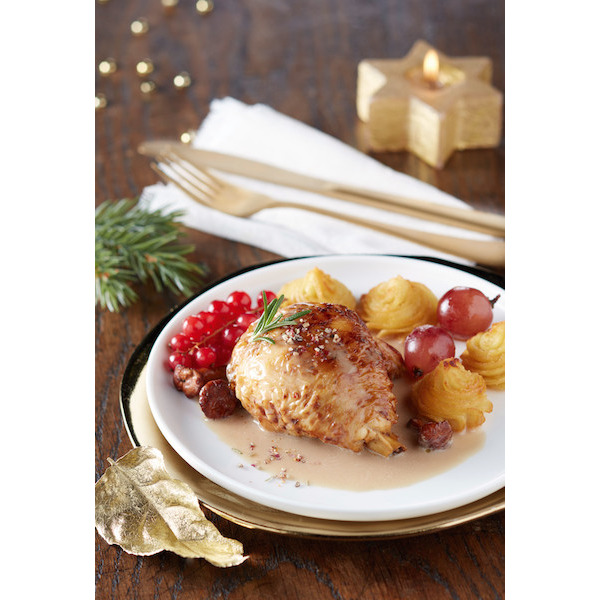 Succombez à la délicatesse d'un chapon français, sublimé d'une savoureuse sauce au foie gras de canard et agrémenté de girolles. Retrouvez cette spécialité au rayon traiteur à la coupe, élaborée avec expertise en France. Profitez de notre prix spécial valable du mardi 17 au mardi 24 décembre. Régalez-vous avec ce met d'exception pour des fêtes inoubliables !.