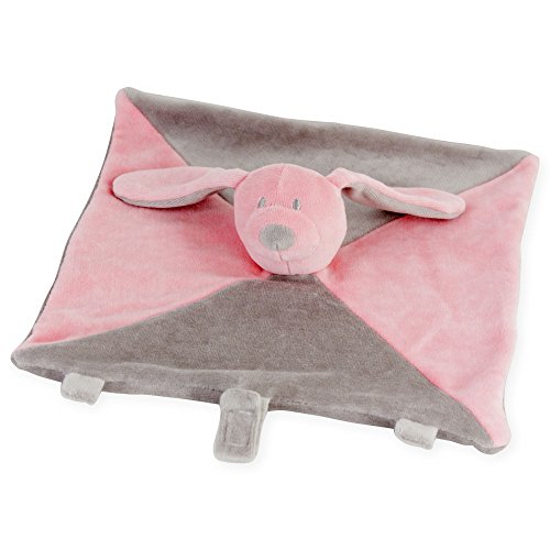 Age : pouvant être utilisé dès la naissance (0 mois) Format standard 28*28 cm (plat carré) Tête de lapin fantaisie sur le dessus avec de grandes oreilles toutes douces et souples (longueur des oreilles : 12cms) que bébé pourra attraper facilement dans sa petite main. Fonction attache sucette par velcros sur l'un des cotés. Lavable en machine à 30°c. Age minimum : 0 mois.