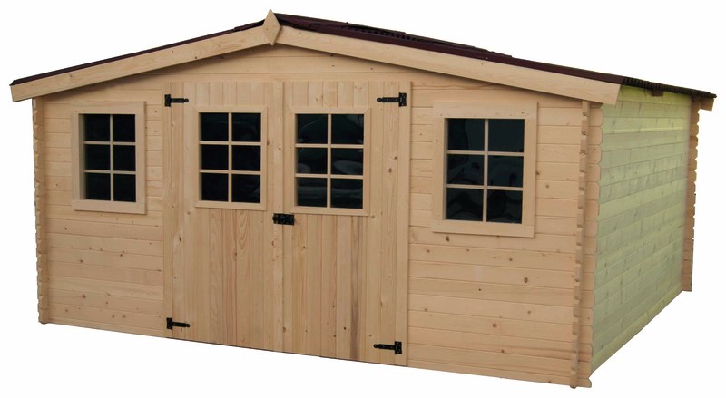 En épicéa Grande largeur de façade 4 m Toit en plaques ondulées Porte double grande largeur 1.60 m avec fenêtre intégrée 2 fenêtres Dim ext au sol : 4 x 3 m Dim ext hors tout : 4.16 x 3.04 m Coloris : Bois naturel / PRODUIT FABRIQUÉ EN EUROPEPRODUITS DISPONIBLES DU 5 MARS AU 30 JUINGARANTIE 2 ANS.