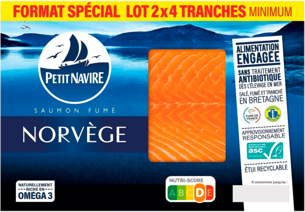 Saumon Fumé De Norvège Petit Navire , identifié par le code barre EAN 3760253433839. Acheter Saumon Fumé De Norvège Petit Navire moins cher en ligne