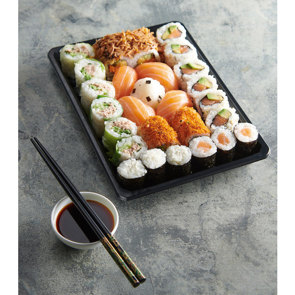 Composé de 6 maki California, 6 verde maki thon mayo, 4 sushis saumon, 4 crunch veggie roll, 4 spicy cali roll, 3 maki fromage, 3 makis saumon. PRÉPARÉ(S) PAR LE STAND SUSHI DAILY DE VOTRE MAGASIN AU RAYON POISSONNERIE.