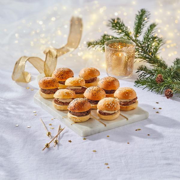 ou duo 10 mini burgers brie à la truffe d'été 1%, cèpes bacon