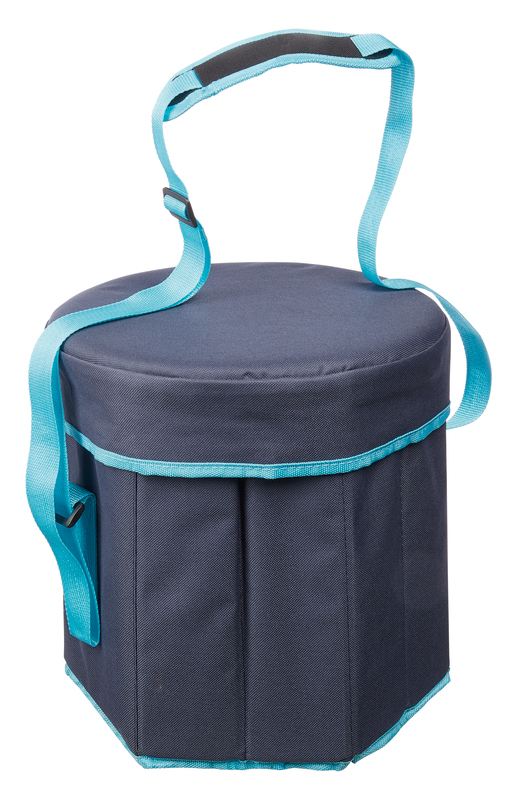 Extérieur en polyester 600D - Intérieur en aluminium - Sacoche pliable pour un rangement facile Diam. : Déplié : 30 x 30 cm - plié : 31 x 6 cm Coloris : Bleu nuit et bleu turquoise.