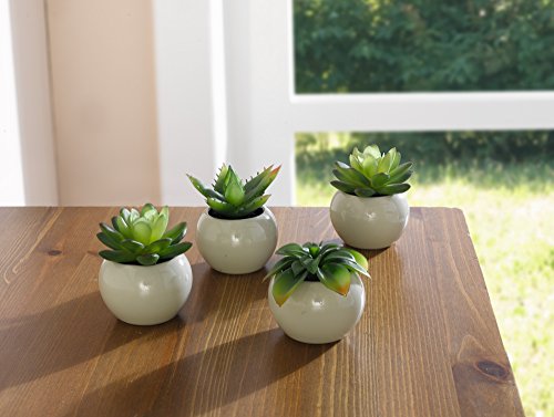 Série 4 pots avec plantes grasses, différentes plantes grasses artificelles dans pots en céramique beige clair Dimension : hauteur environ 7 cm, pot Ø 6 cm Décoration de table.