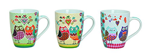 4007698121686 de Lot de 3 tasses avec motif hibou grand format en porcelaine-taille 10 cm, contenance 300 ml
