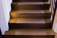 RS Office - Treppe-8026 RS Bureau tapis de marche d'escalier "Ecogrip", (L) 800(P) 225 mm pour sols durs, carré, transparent, en macrolon recyclé (Polycarbonate), avec points adhésifts pour la fixation (Treppe-8026).