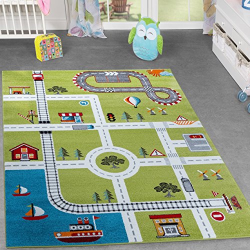 T&T Design Chambre d'enfant Tapis Tapis de jeu avec design City Ville portuaire Routes en vert, 80 x 150 cm ? Avant d'effectuer votre achat, Zounko
