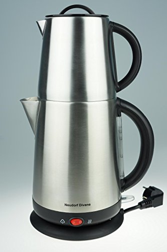 4060512587358 de Neudorf électronique Manufacture Bouilloire eau de thé 'divane' avec arrêt automatique. Machine cuisson et fonction maintien au chaud/2200 W Puissance de cuisson & 280 W Warm Attitude/robuste protection & Technologie Sparsame grâce à double système de chauffage/à sec/Strix Système de sécurité (Protection contre la surchauffe Engl. brevet)/Acier inoxydable brossé/1L (Théière) & 1,7 L (Bouilloire)