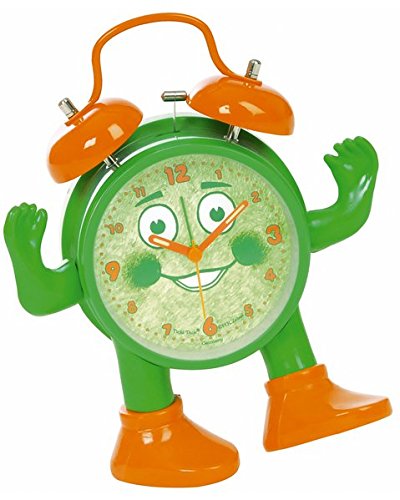 Horloge à quartz super silencieux Sonnerie avec doubles cloches qui réveille tous les dormeurs Jambes et bras mobiles comme une poupée Trotteuse - sans tic-tac Boitier solide en plastique Ticki Tack et Miss Ticki sont certes plus que de simples réveils Ticki Tack et Miss Ticki sont de solides compagnons des enfants à partir de 4 ans Garantie : 2 an(s) Couleur : Vert/Orange.