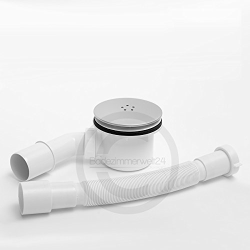 Aquabad Bonde Receveur de bac de douche | AQUABAD® Trapflex siphon | Pour diamètre de la bonde ø 90 cm | Sens de sortie: horizontal | Finition du produit couverture: Satin massif | Ensemble de Bonde receveur trés peu profonde, expiration arc, tube flexible ? Avant d'effectuer votre achat, Zounko