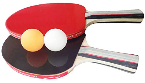 4260556457093 Lot de 2 raquettes et 6 balles de tennis de table,Raquette en bois de placage de qualité supérieure avec poignée ergonomique - Grande force de frappe grâce au revêtement en caoutchouc de 0,4 mm,Avec 6 balles de tennis de table (4 x blanc, 2 x orange),Convient pour toute la famille,Bonne finition, léger et de qualité supérieure.