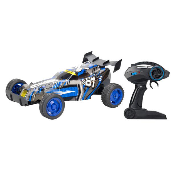 Radio commandée. 20 km/h. 2.4 Ghz. Batterie fournie (voiture), 2 LR06 non fournies (télécommande).