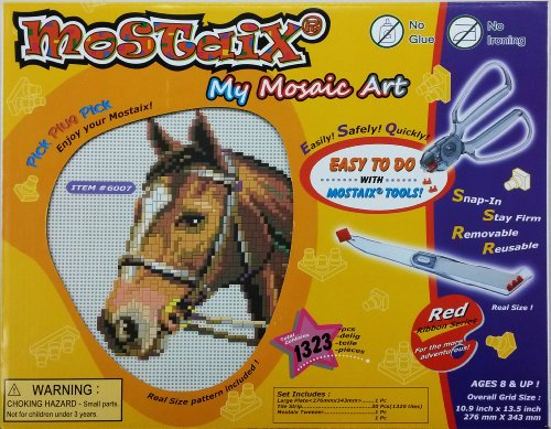 Mostaix Red Ribbon Art Horse série Mosaic Set - Mostaix serie de rouban rouge cheval kit d'art Pas de repassage ou de la colle nécessaire Comprend 1 320 carreaux colorés en plastique et une grille en plastique 276 x 343mm Deux cintres en plastique sont attachés à la grille pour en valeur vos créations Comprend placement et de retrait des pincettes brevetés et breveté diviseur de tuiles de sécurité.