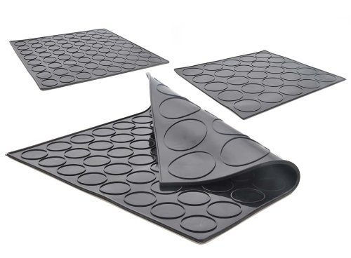 Moule en silicone de qualité alimentaire, simple à utiliser, souple. Adapté au four, au micro-onde, au réfrigérateur et au congélateur. Solide et antiadhésif 25 alvéoles de 50 mm de diamètre sur une face. L'autre face présente 64 alvéoles de 30 mm de diamètre. Cette plaque s'adapte parfaitement à des plaques de cuisson de type 30 x 30 cm (12" x 12")..