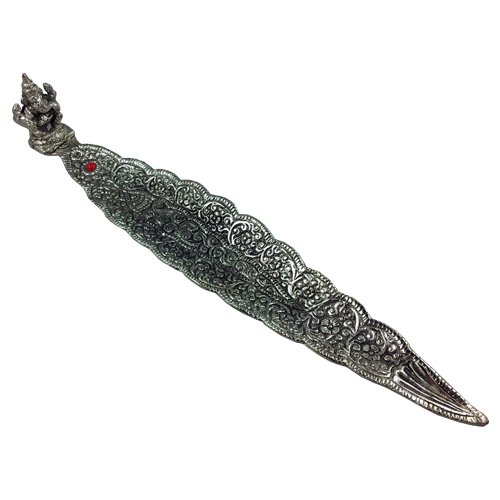 Bateau feuille d'encens Métal Stick brûleurs Lord Ganesha Porte-encens Produit du commerce équitable Mesure 20 cm de long.