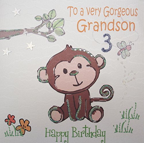 White cotton cards GL 224-3 "Cheeky Monkey, To A Very Gorgeous Grandson Happy Birthday 3 3e carte d'anniversaire faite à la main Blanc. Partagez votre expérience avec d'autres internautes.