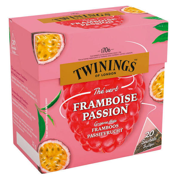 Goûtez aux délicieux mélanges de thé parfumé Twinings et laissez-vous séduire par les saveurs exquises de Framboise/Passion, Menthe/Chaï, Pamplemousse/Citron vert, Coco/Passion ou Cerise/Ananas. Ces 20 sachets renferment 32 g de plaisir aromatique. Twinings, une invitation à l'évasion gustative..