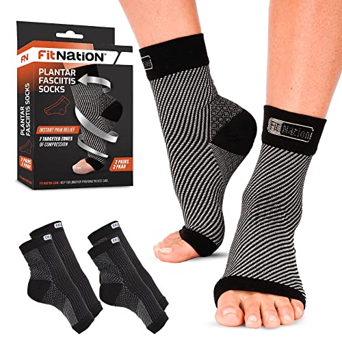 5056514100465 SOULAGEMENT INSTANTANÉ DE LA DOULEUR: Réduisez l'inflammation et la douleur des pieds avec les chaussettes de compression Fit Nation,COMPRESSION DOUCE ET FERME - Chaussettes de soutien pour la fasciite plantaire équipées de 7 zones de pression qui aident à favoriser la circulation sanguine et la récupération musculaire tout en soutenant les talons et les chevilles,MATÉRIAUX DE QUALITÉ SUPÉRIEURE - Fabriqués à partir d'un mélange de 86% de nylon et de 14% d'élasthanne, ces chaussettes pour fasciite plantaire de haute qualité offrent un soutien respirant et confortable tout au long de la journée,ENTRETIEN FACILE: Ces chaussettes de maintien du talon sont lavables à la machine et résistantes. Leur design élégant est adapté à toutes les situations.,GARANTIE COMPLÈTE: Si pour une raison quelconque vous n'êtes pas entièrement satisfait des chaussettes de compression, Fit Nation vous remboursera le prix total, sans poser de questions..