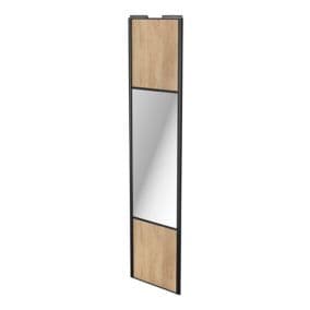 5059340466415 de Porte de placard coulissante avec miroir effet chêne brut profil noir GoodHome Arius H. 248,5 x L. 62.2 cm + amortisseurs
