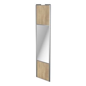 5059340466446 de Porte de placard coulissante avec miroir effet chêne brut profil gris GoodHome Arius H. 248,5 x L. 62.2 cm + amortisseurs