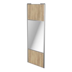 5059340466460 de Porte de placard coulissante avec miroir effet chêne brut profil gris GoodHome Arius H. 248,5 x L. 92.2 cm + amortisseurs