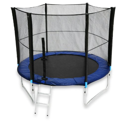 UN bleu tampon en mousse qui est de 12mm d'épaisseur. Les ressorts et les jambes sont tous galvanisé de l'extérieur et de l'intérieur Trampoline est livré avec un filet de sécurité et la pluie capot Les échelles sont inclus dans tous nos trampolines, indépendamment de leur taille. 120KG poids d'utilisateur maximal, donc c'est parfait même pour les adultes ! TUV GS, FR-71, approuvé CE Résistant aux UV Mousse à cellules fermées qui n'absorbe pas l'eau ou de la moisissure ou perdre forme Cousu avec heavy duty résistant aux UV et thread utilisant galvanisé v les joints toriques 120Kg poids d'utilisateur maximal.