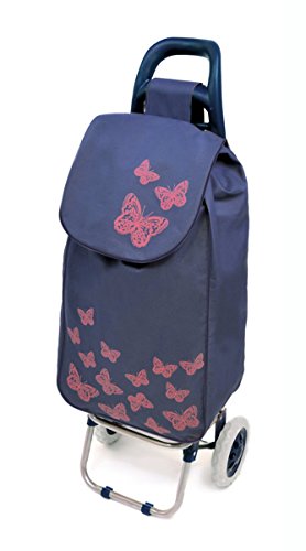 Chariot de courses avec cadre en métal robuste et léger Ergonomique compact pliable à plat Sangles Velcro permettant un retrait facile Cordon avec protection intempéries rabat 25 litres Dimensions?: 47 x 46 x 20 cm.