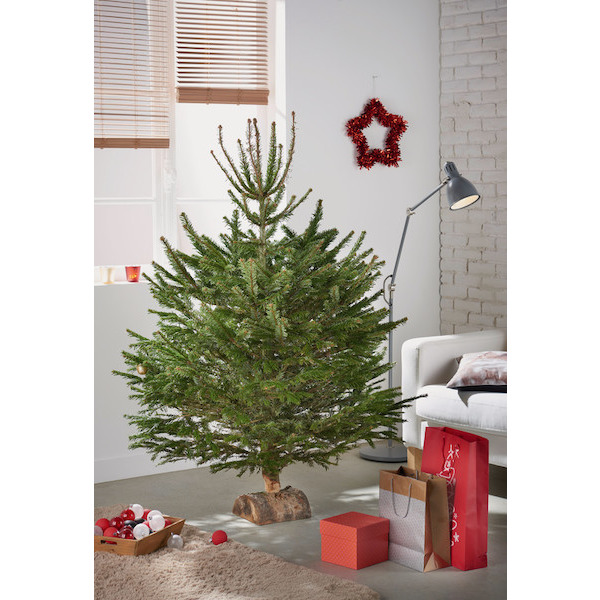 Hauteur 100/150 cm. Ne perd pas ses aiguilles. Vendu sans bûche.