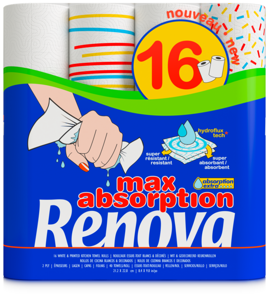 RENOVA , identifié par le code barre EAN 5601028034722. Acheter RENOVA ESSUIE-TOUT MAXI-ABSORPTION X16