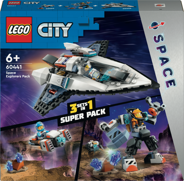 Contient 3 boites : le robot chantier de l'espace 140 pièces, le vaisseau interstellaire 240 pièces et la moto volante de l'espace 46 pièces. - Offre valable du 22/10/2024 au 08/12/2024.