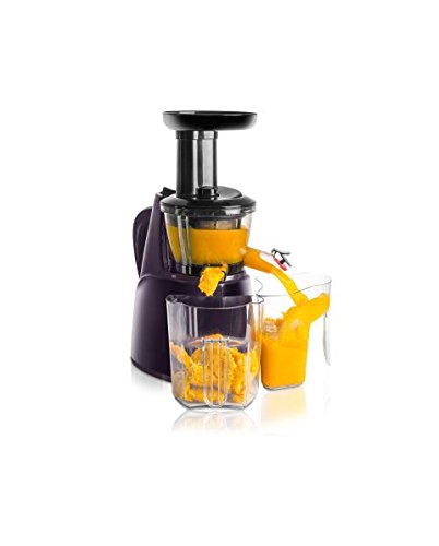 super Extracteur de Jus Slow JUICER ESSENCE à rotation lente 150W - Extracteur de jus vertical ultra polyvalent et performant. conserve les bienfaits, enzymes, minéraux et vitamines de vos légumes et fruits Extraits 2 fois plus de jus et conserve 6 fois plus de vitamines Fourni avec 1 tamis à jus, 1 tamis à smoothies et 1 tamis à nectar Garantie sans Bisphénol A.
