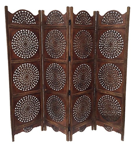 topfurnishing Paravent 4 panneaux Sticker Feuilles Design Rond en bois indien sculpté [Marron clair] ? Avant d'effectuer votre achat, Zounko