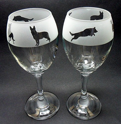 Une paire de verres à vin élégant avec inscription en allemand Motif givré autour de la Frise Sheperd Jante Gravé à la main dans notre atelier Cadeau idéal pour les amoureux de chiens et d'animaux Emballé comme montré dans les images.