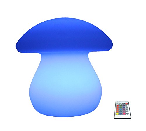 Mushroom Taille: env Largeur 21cm Hauteur 20cm. Lampe de table LED et lumière d'ambiance pour votre chambre. Batterie rechargeable: non salissante fils, sans fil et portable Télécommande pour régler 16 couleurs différentes et 4 mode d'éclairage (Flash, Strobe, Fade et lisses) Peut être utilisé en intérieur et extérieur; Décoration pour la maison et le jardin, chambre, boîte de nuit, et d'autres..