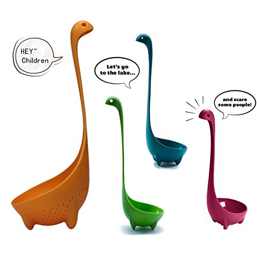 Projet Nessie passoire pour légumes et pâtes - sortir de la marmite avec vos pâtes ou légumes prêt à servir. Passoire Dimensions?: 29,5 x 10,9 cm/29,5 x 11 cm pastasaurus à pâtes Taille?: 23 x 4,8 x 4,8 cm Projet Nessie perfore unique pour les soupes de cuisine louche pour servir la soupe ou Punch. Louche Taille?: 26,5 cm x 8 cm Sûr et durable, en nylon - Qualité Alimentaire - Ne passe pas au micro-ondes. Une cuisson agréable accessoire "pieds sur le fond de la louche permet projet Nessie louche et passoire pour debout en pots. Nouveauté design amusera vos enfants et pour leur intérêt en cuisine..