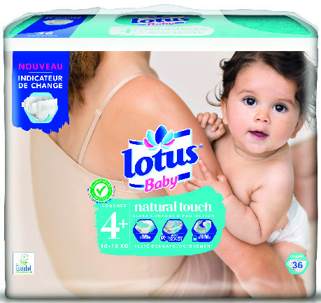 7322540852356 Lotus Baby Natural Touch, une gamme complète de changes ouverts pour bébés alliant ultra-confort & protection pour un confort maximal des bébés et de leurs parents,Une qualité inégalée centrée sur l'ultra-douceur & l'ajustement parfait,Des barrières antifuites ultra-douces et un matelas absorbant offrant jusqu'à 12h de protection pour que bébé reste bien au sec,Nouveau : un indicateur de change vous informe quand il est temps de changer la couche de bébé,Testé dermatologiquement et accrédité par la Skin Health Alliance,0% lotion – parfum – colorant en contact avec la peau,Composition garantie : évaluation de toutes les matières par des experts et innocuité démontrée par des tests en laboratoire indépendant,Couches certifiées Ecolabel et ouate de cellulose certifiée FSC